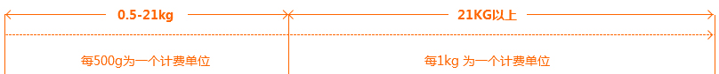 a、計費重量在21kg以下的包裹為國際小包,按照每500克(0.5kg)為計費單位; b、計費重量在21kg(含)以上的包裹為國際大包,按照每公斤為計費單位; 在測量重量時,不能有零頭出現,即: 當物品重量在5.05kg時,實際計費按5.5kg;當物品重量在21.1kg時,實際計費按22kg; |